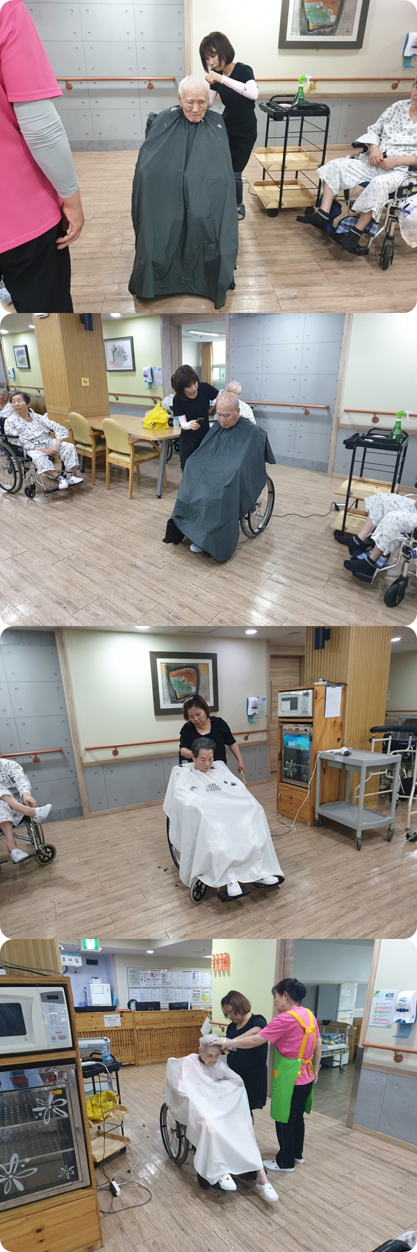 6월, 시흥에스앤케이요양병원에서는 전문 이.미용 봉사자님들이 본원에 방문하여 환자분들의 깔끔하고 단정한 이·미용 서비스가 4병동 환자분들의 개별 욕구에 맞는 서비스가 진행되었습니다.