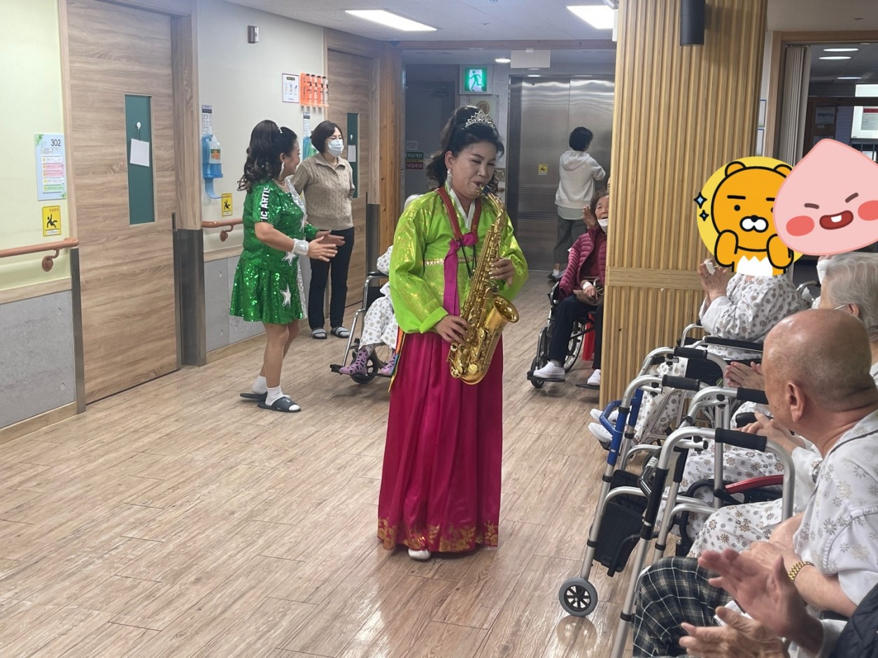 이번에는 부채춤과 멋드러진 색소폰 연주도 해 주셨네요