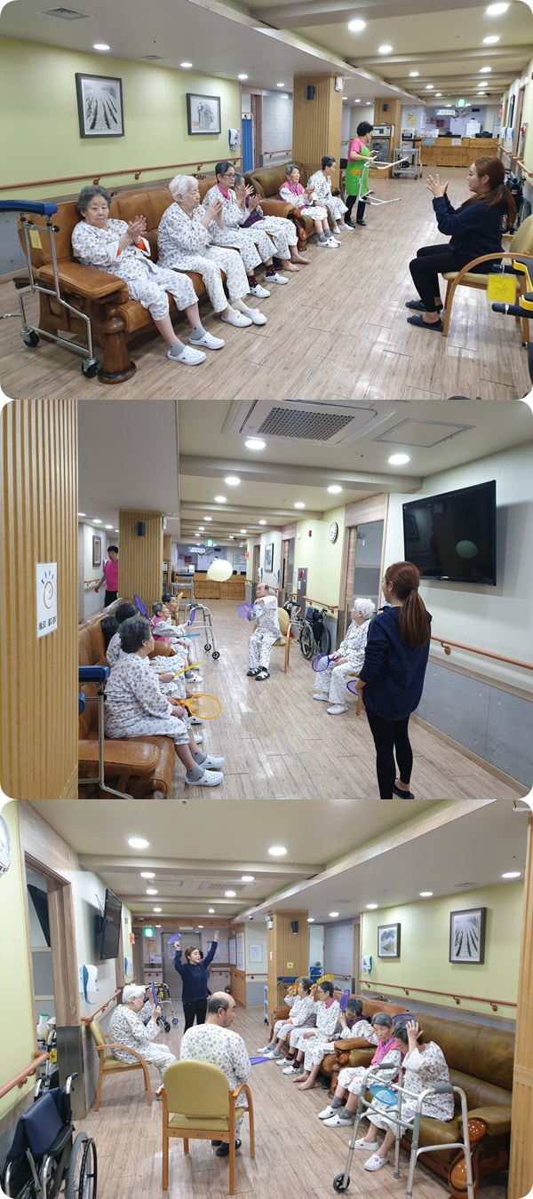 시흥에스앤케이요양병원에서 매주 수요일은 행복테라피 튼튼 건강체조가 있는 날입니다.