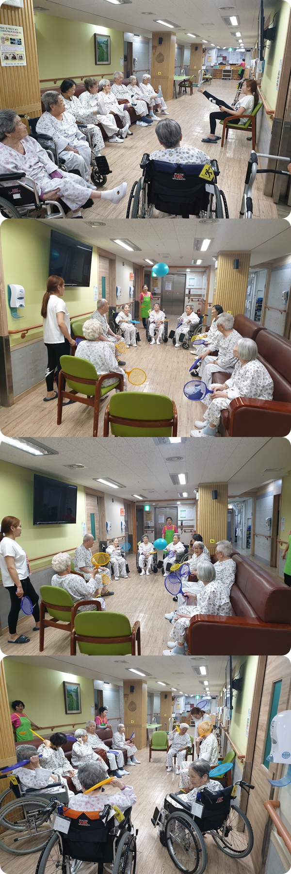 시흥에스앤케이요양병원에서 매주 수요일은 행복테라피 튼튼 건강체조가 있는 날입니다.