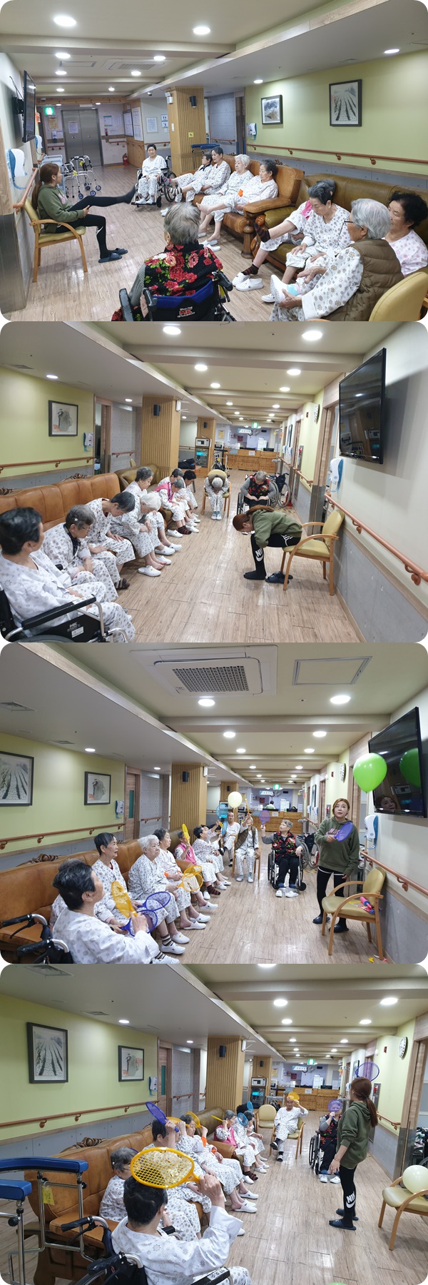 시흥에스앤케이요양병원에서 매주 수요일은 행복테라피 튼튼 건강체조가 있는 날입니다.