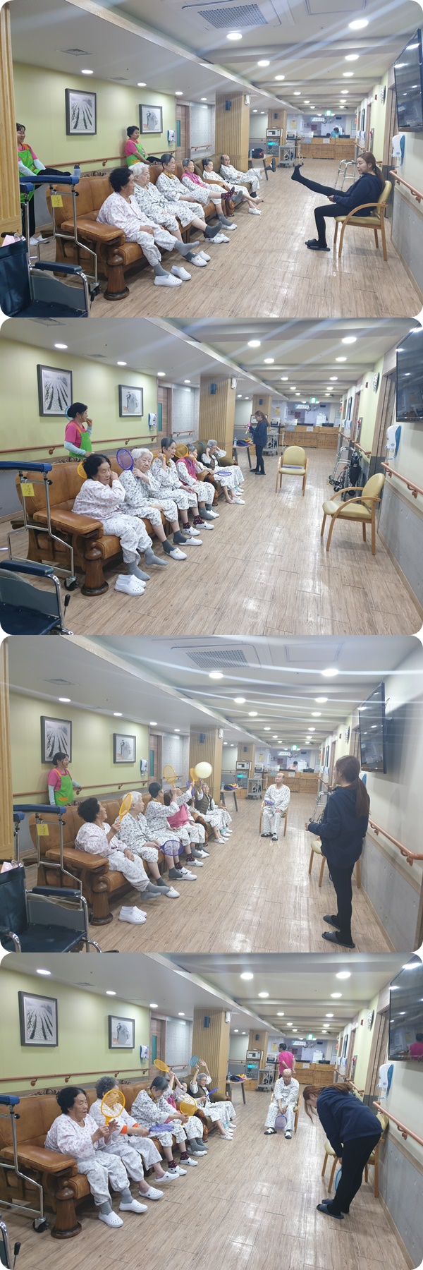 시흥에스앤케이요양병원에서 매주 수요일은 행복테라피 튼튼 건강체조가 있는 날입니다.