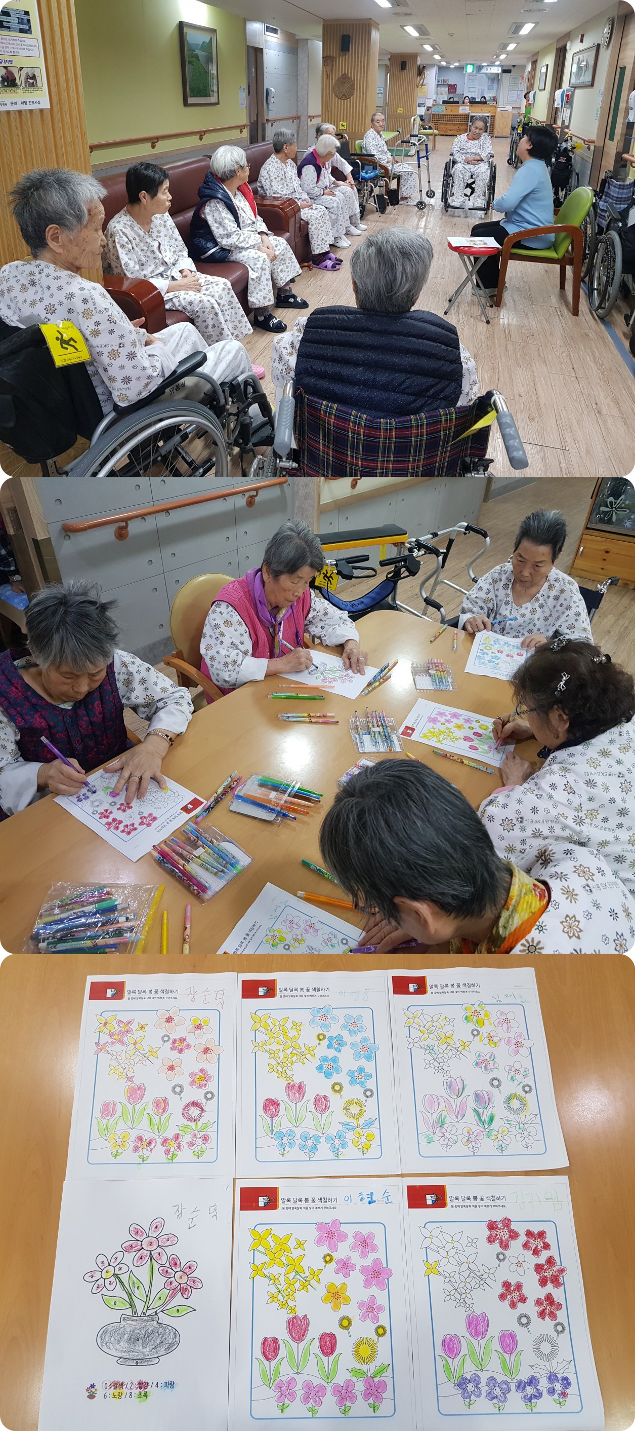 2019년 3월 둘째 주, 4층 병동에서 봄꽃 색칠하기 및 힘뇌체조를 진행하였습니다.