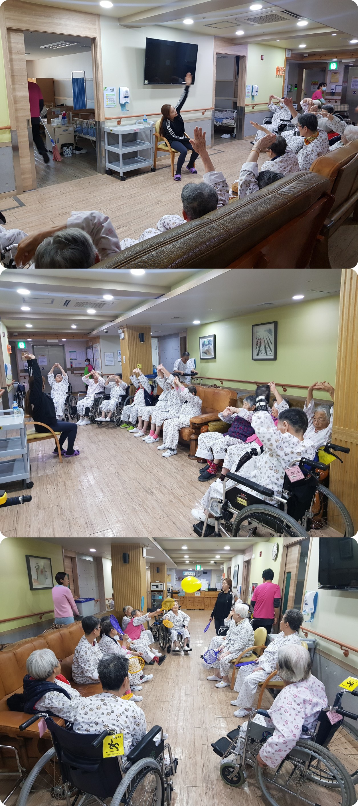 시흥에스앤케이요양병원에서 매주 수요일은 행복테라피 튼튼 건강체조가 있는 날입니다.