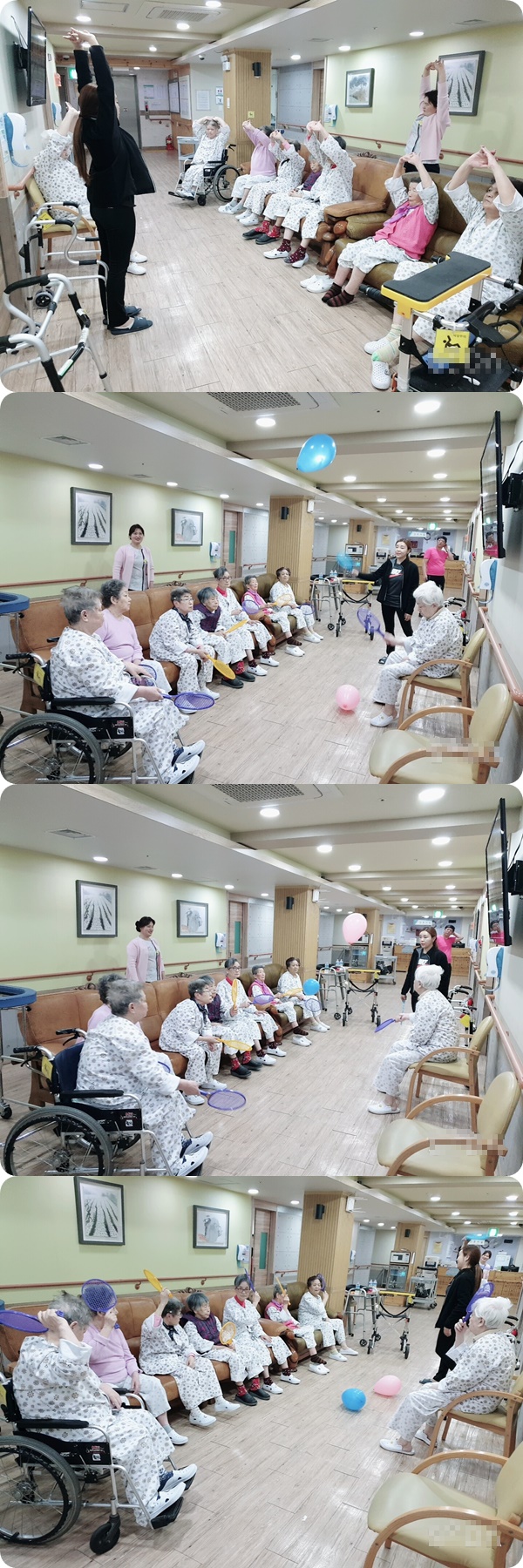 시흥에스앤케이요양병원에서 매주 수요일은 행복테라피 튼튼 건강체조가 있는 날입니다.