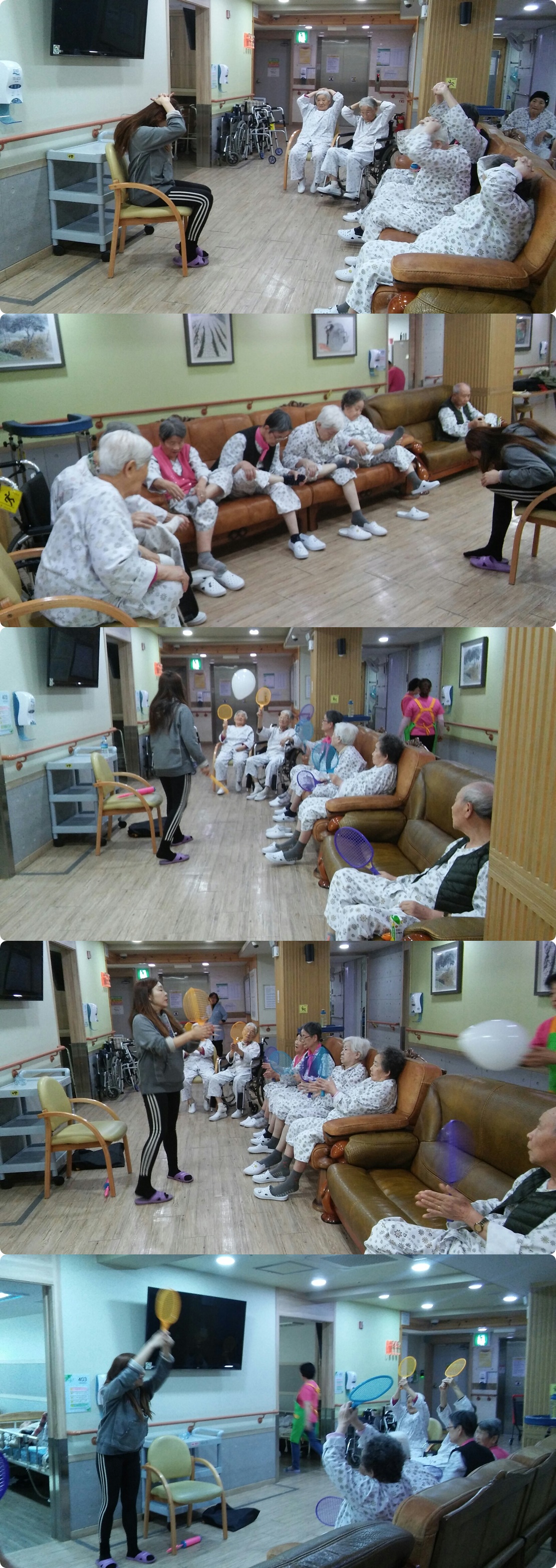 1월 네번째주 수요일 오후에도 병동에서는 건강체조가 진행되었습니다. 금일은 근력운동을 보다 효과적으로 하기 위해 풍선을 이용하여 체조가 진행되었으며 참여환자분들께서 적극적으로 참여하시는 모습을 볼 수 있었습니다,