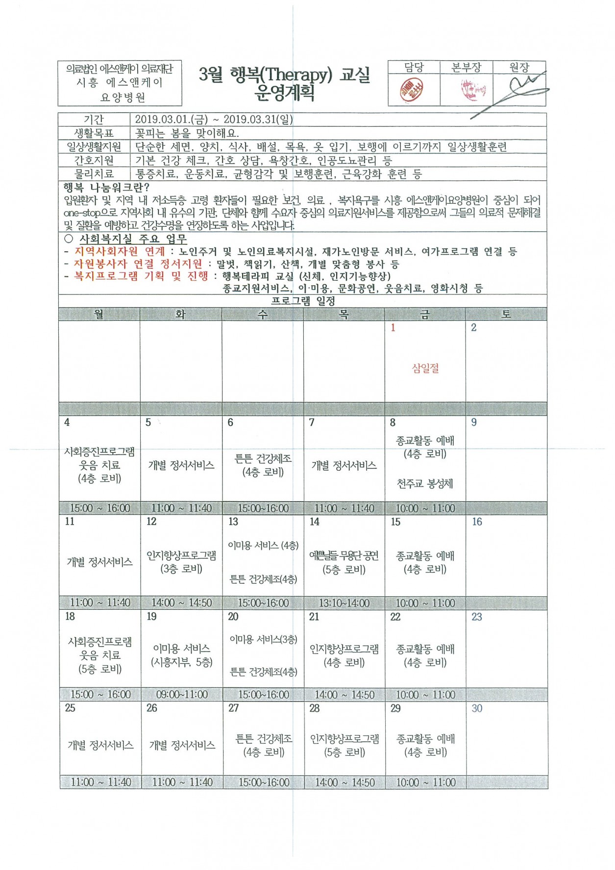 저희 에스앤케이 요양병원에서는 3월부터 치매 초기, 의심 어르신을 대상으로 인지향상 프로그램을 진행하고자 합니다~ 많은 관심과 응원 부탁드립니다!
