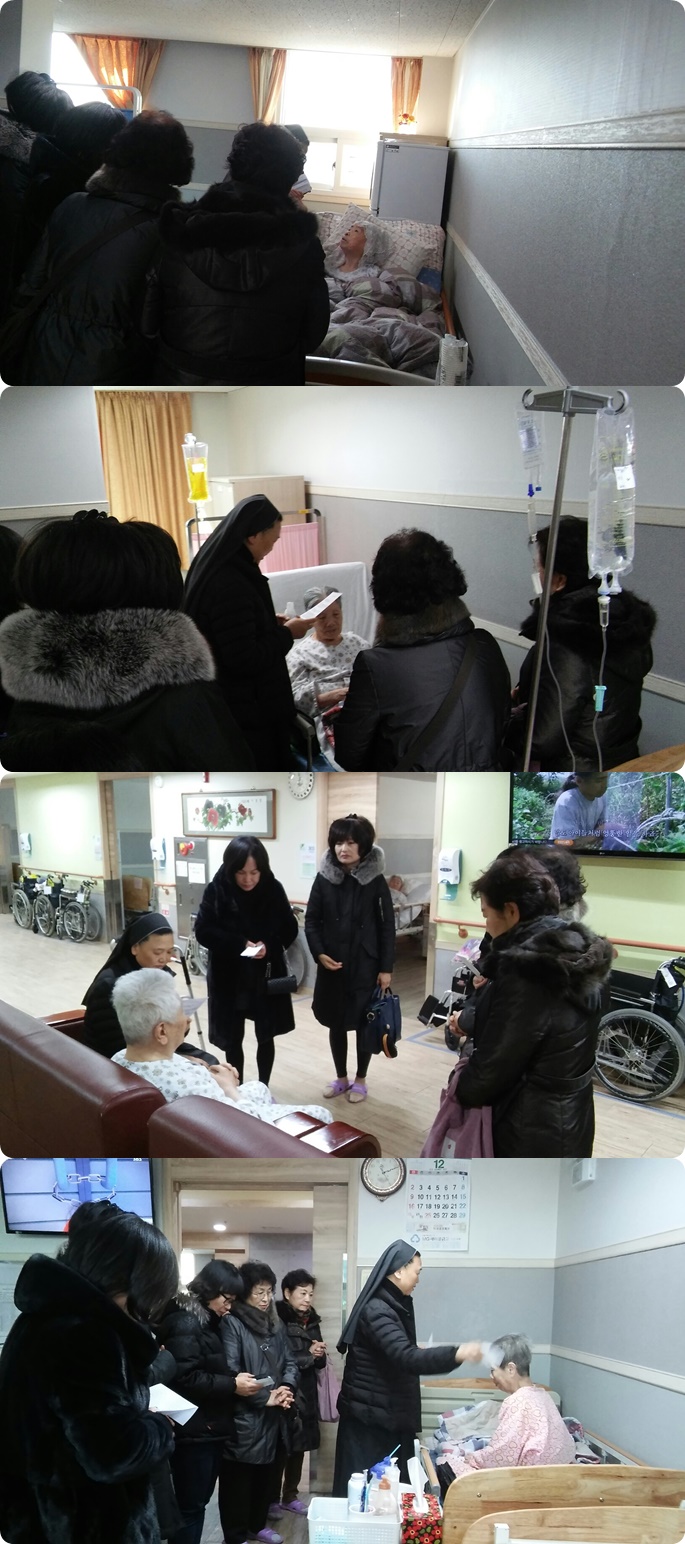 12월달 시흥SK요양병원 매월 둘째주 금요일에는 시흥시 관내 거주하시는 환자분들 중 성당에 다니셨던 환자분들을 위해 대야동 성당의 신부님 수녀님, 신도님들이 함께 방문하시어 환자분들을 위한 봉성체를 월 1회 드리고 있습니다.