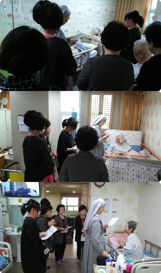 9월달 시흥SK요양병원 매월 둘째주 금요일에는 시흥시 관내 거주하시는 환자분들 중 성당에 다니셨던 환자분들을 위해 대야동 성당의 신부님 수녀님, 신도님들이 함께 방문하시어 환자분들을 위한 봉성체를 월 1회 드리고 있습니다.