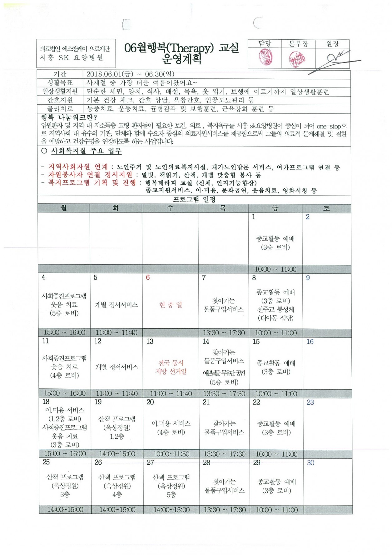 여름의 시작을 알리는 6월달 행복테라피 계획표입니다.