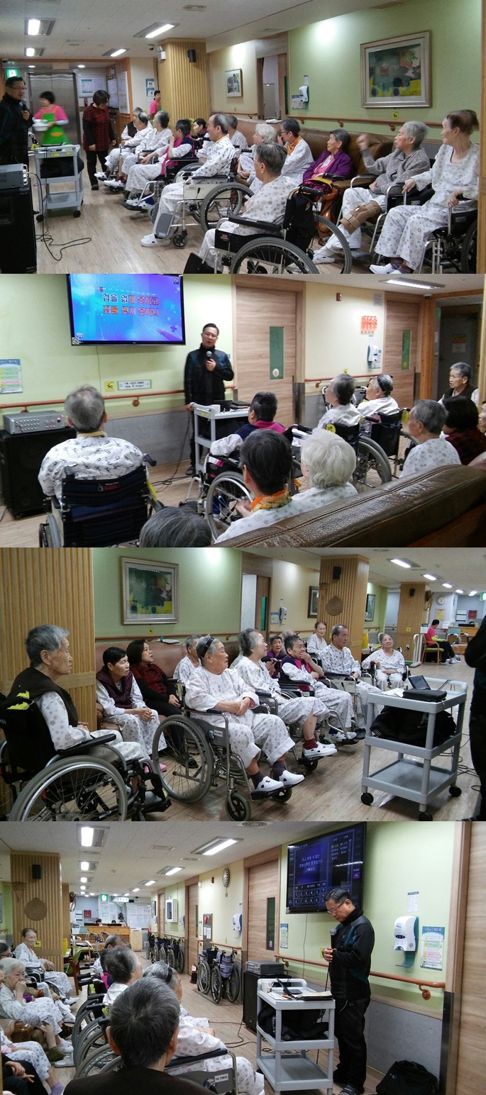 시흥SK요양병원에서는 주 1회 종교 활동 예배를 드리고 있습니다.12월 첫째주 금요일 오전 3층 병동에서는 예배시간에는 어려움 당할 때외4곡,베드로전서 말씀의 시간을 가졌으며, 서로 악수를 하고 인사를 주고받으며 소통의 예배시간이 되었습니다.