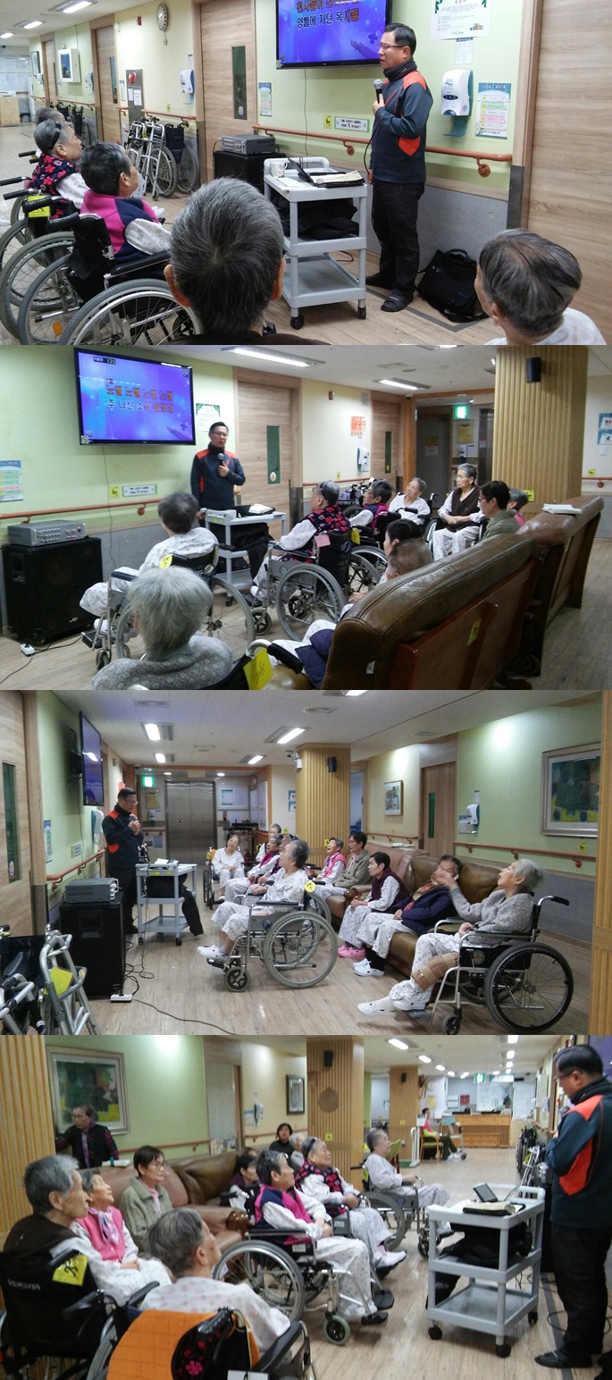시흥SK요양병원에서는 주 1회 종교 활동 예배를 드리고 있습니다.12월 넷째주 금요일 오전 3층 병동에서는 예배시간에는기쁘다 구주 오셨네 이외의4곡,고린도전서 1장 말씀의 시간을 가졌으며, 서로 악수를 하고 인사를 주고받으며 소통의 예배시간이 되었습니다.