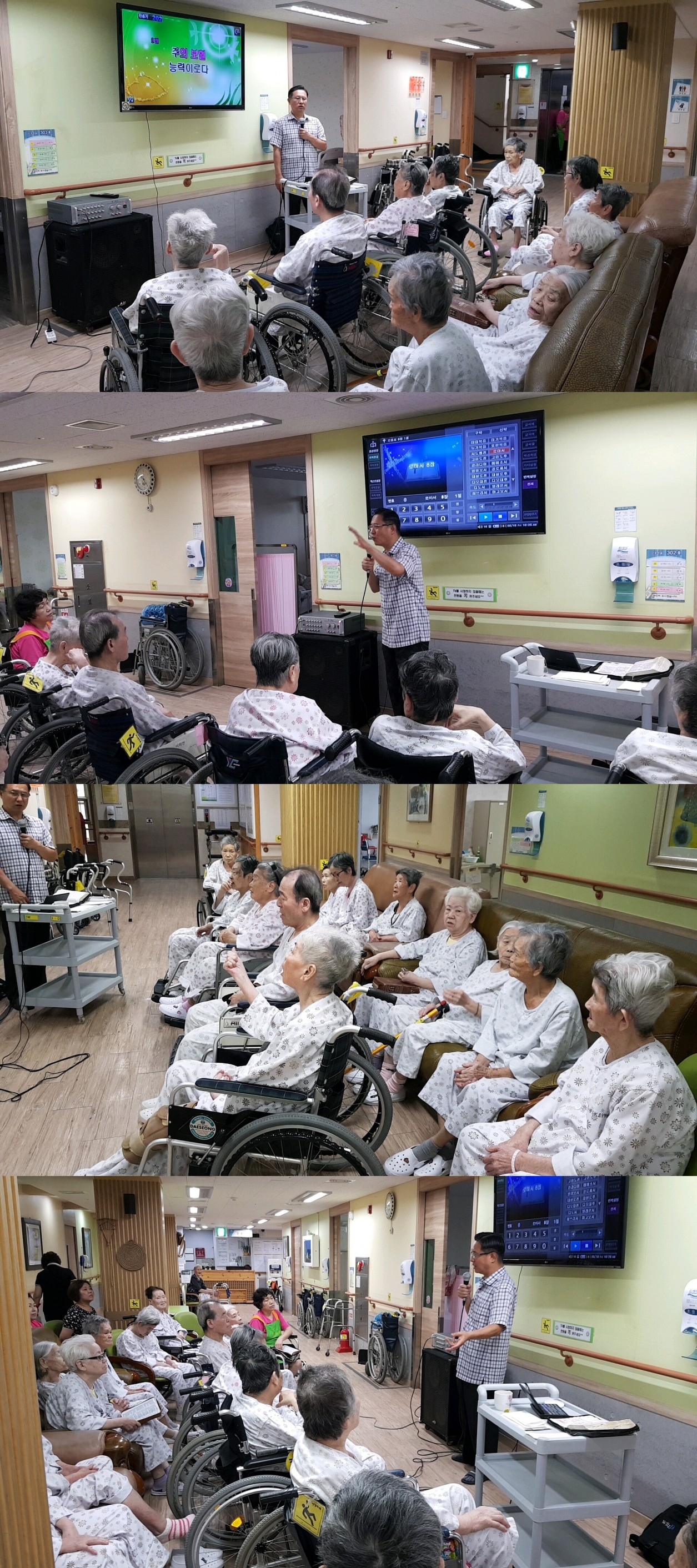 시흥SK요양병원에서는 주 1회 종교 활동 예배를 드리고 있습니다. 8월 셋째주 금요일 오전 3층 병동에서는 예배시간에는 ‘죄에서 자유를 얻게함은’ 찬송 외 2곡과 로마서 8장 말씀의 시간을 가졌으며, 서로 악수를 하고 인사를 주고받으며 소통의 예배시간이 되었습니다.