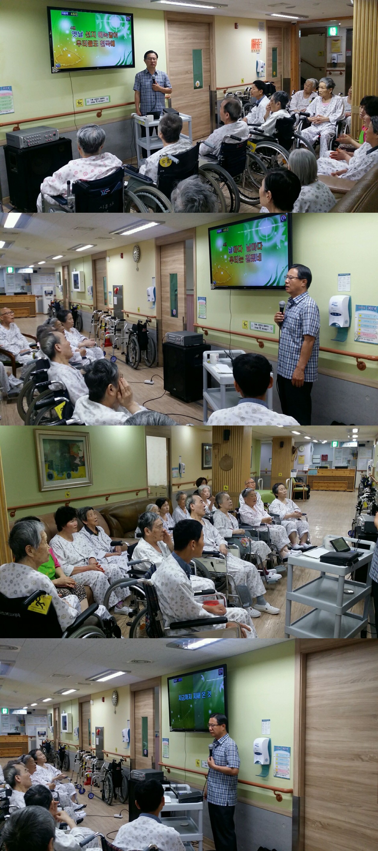 시흥SK요양병원에서는 주 1회 종교 활동 예배를 드리고 있습니다. 6월 마지막주 금요일 오전 3층 병동에서는 예배시간에는 ‘지금까지 지내온것’ 찬송 외 4곡과 에베소서 1장 말씀의 시간을 가졌으며 힘께 찬송하고 설교말씀을 들으며 즐거운 예배 시간을 보냈습니다.