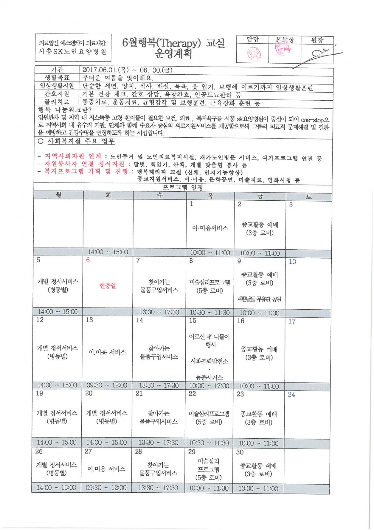 6월 행복테라피 운영표