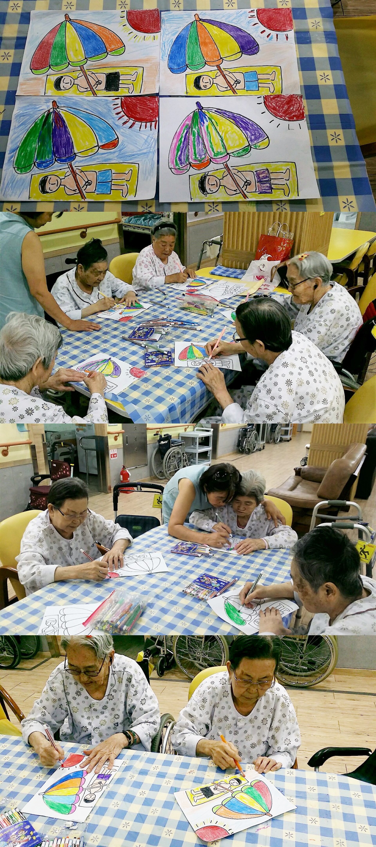 2017년 6월 셋째 주 미술시간에는 ‘즐거운 여름 해변’을 주제로 여름 해변 그림을 색칠하고 꾸며보는 시간을 가져보았습니다. 환자분들께서 직접 색을 고르고 색칠하는 과정을 통해 자율성을 높이고, 손의 근력을 향상시키는 활동이 되었습니다. 그리고 여름의 날씨, 해변에 대하여 함께 이야기하며 즐거운 시간을 보내는 환자분들을 볼 수 있었습니다.