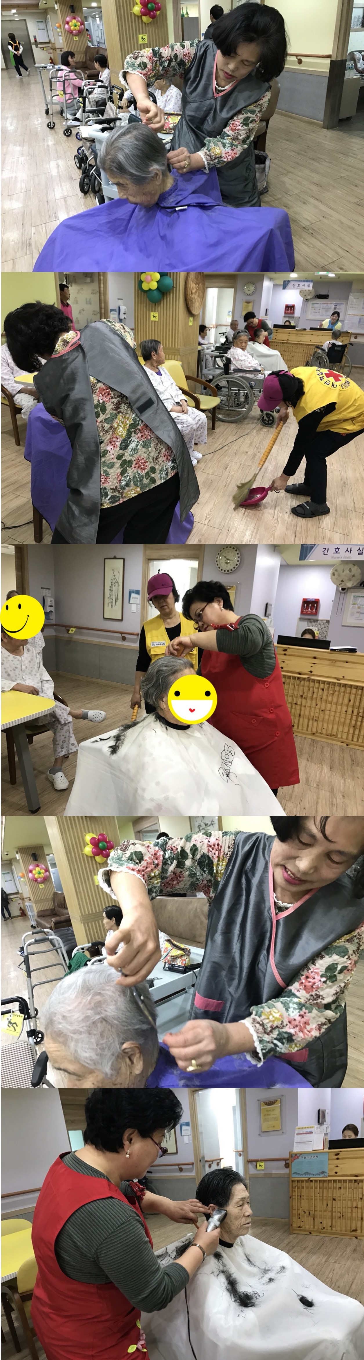 ※ 시흥SK요양병원의 이.미용 서비스는 전문 봉사자님들의 날짜와 시간을 조정하여 각 병동별 진행되고 있으며 지역사회와 연계하여 최고의 서비스를 제공하도록 하겠습니다.