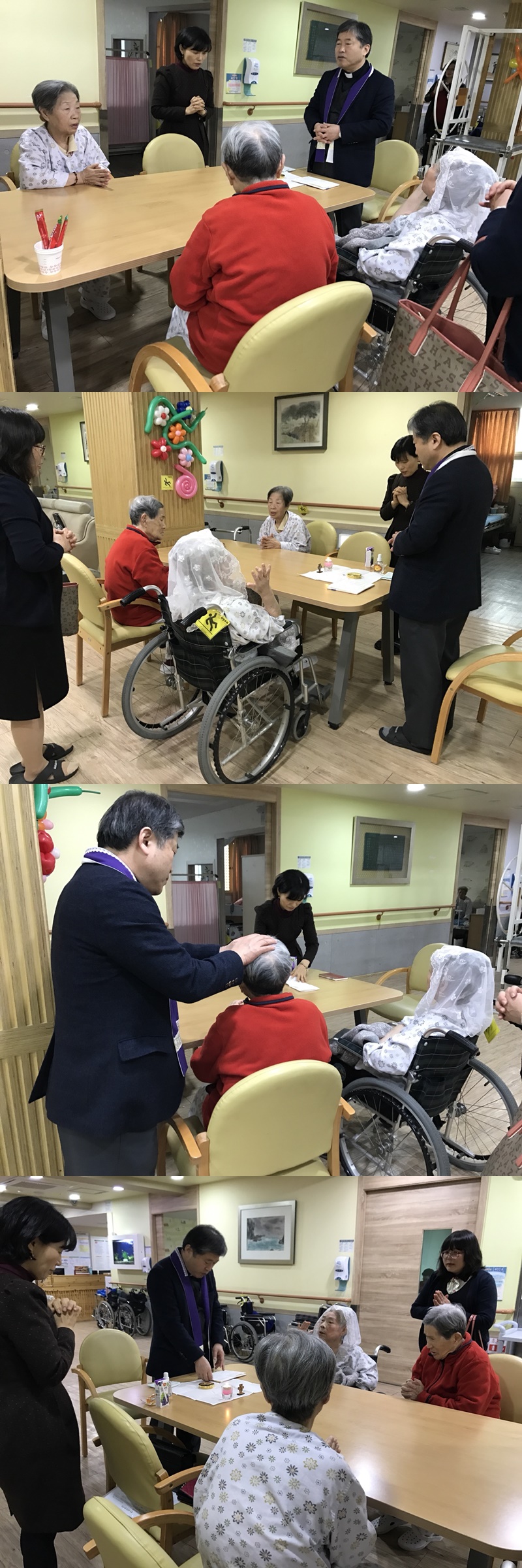 매월 첫째주 목요일에는 시흥시 관내 거주하시는 환자분들 중 성당에 다니셨던 환자분들을 위해 각 관할 성당 (신천동, 은행동, 대야동 성당)의 신부님 수녀님, 신도님들이 함께 방문하시어 환자분들을 위한 봉성체를 월 1회 드리고 있습니다