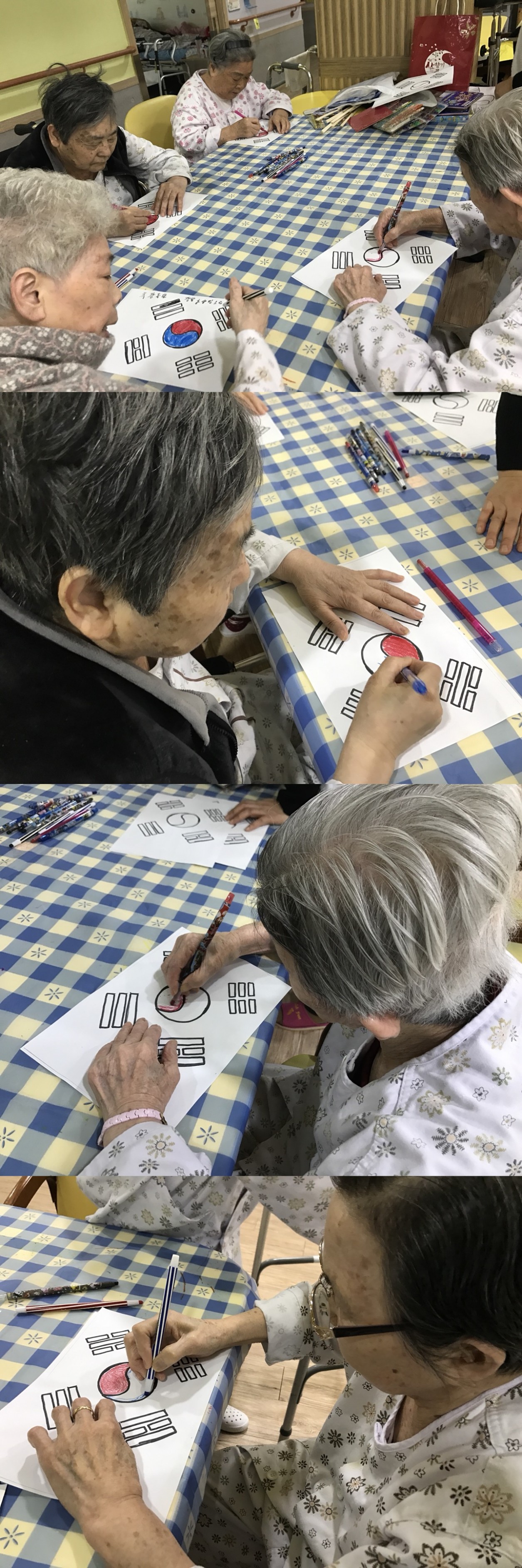 2017년 3월 첫째주의 미술심리프로그램 시간에는 ‘3.1절’을 맞이하여 태극기를 함께 만들어보는 시간을 가져보았습니다. 환자분들께서는 태극기를 보고 과거 3.1절에 대하여 함께 이야기를 나누고 3.1절 노래를 부르며 애국심이 가득해지는 시간이 될 수 있었습니다.
