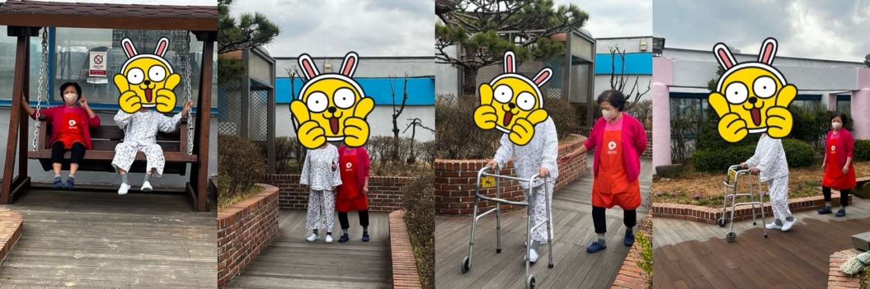 간병사 선생님께서 거동이 가능하신 환자분을 모시고 산책을 나오셨더라구요