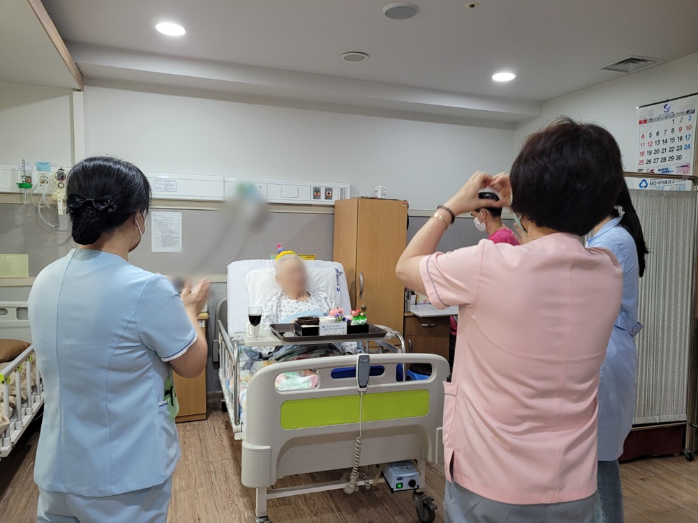 영양사,사회복지사, 간호사, 간병사,요양보호사 그리고 같은 병동에 계신 환자분들도 함께