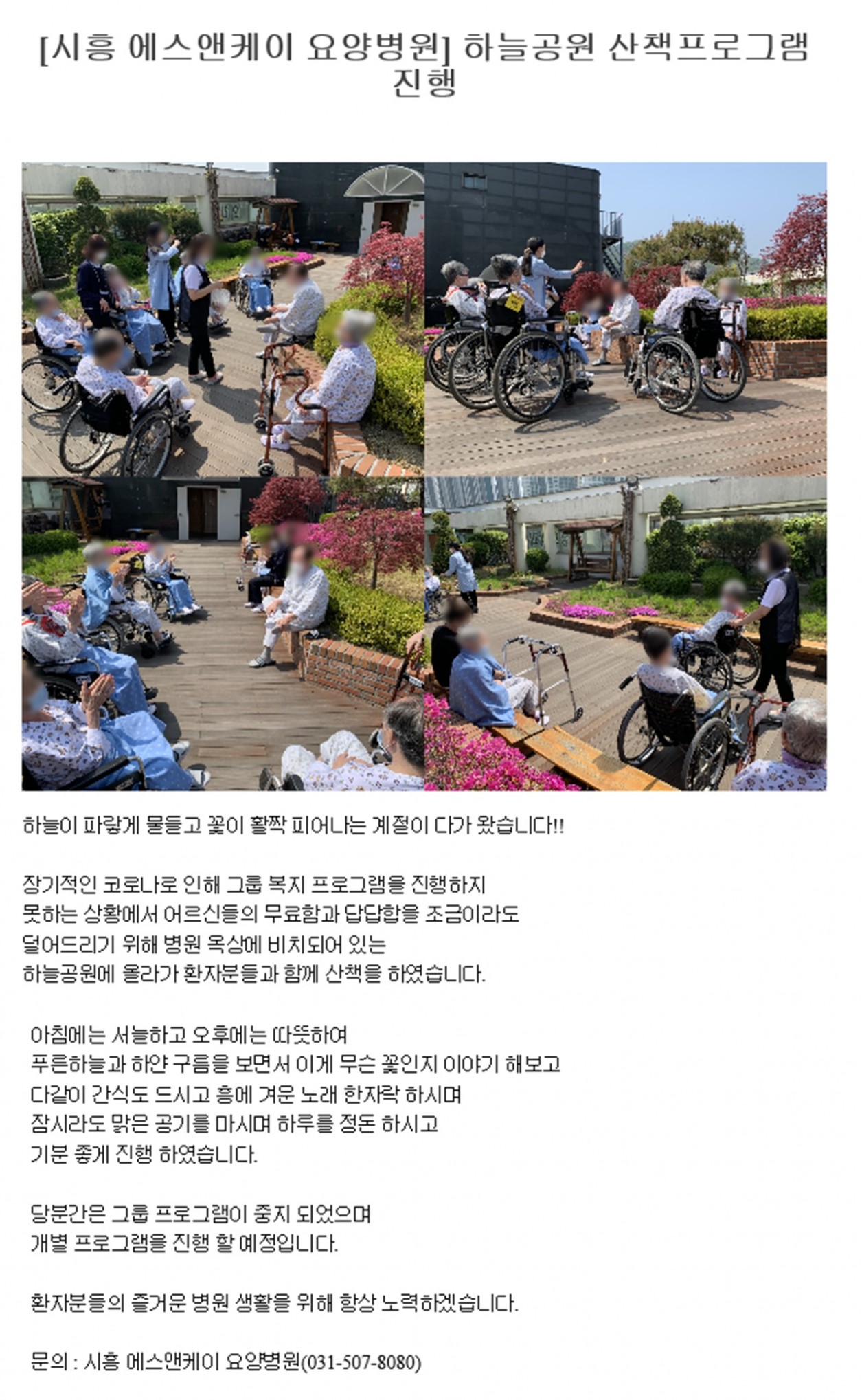 시흥에스앤케이요양병원 하늘공원 산책에 대한 내용이 보도되었습니다!