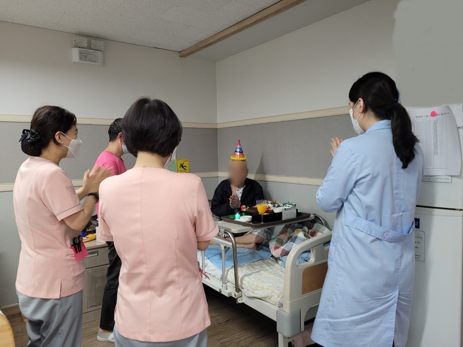 시흥에스앤케이요양병원에서는 매달 입원환자분들 대상으로 생일을 맞이한