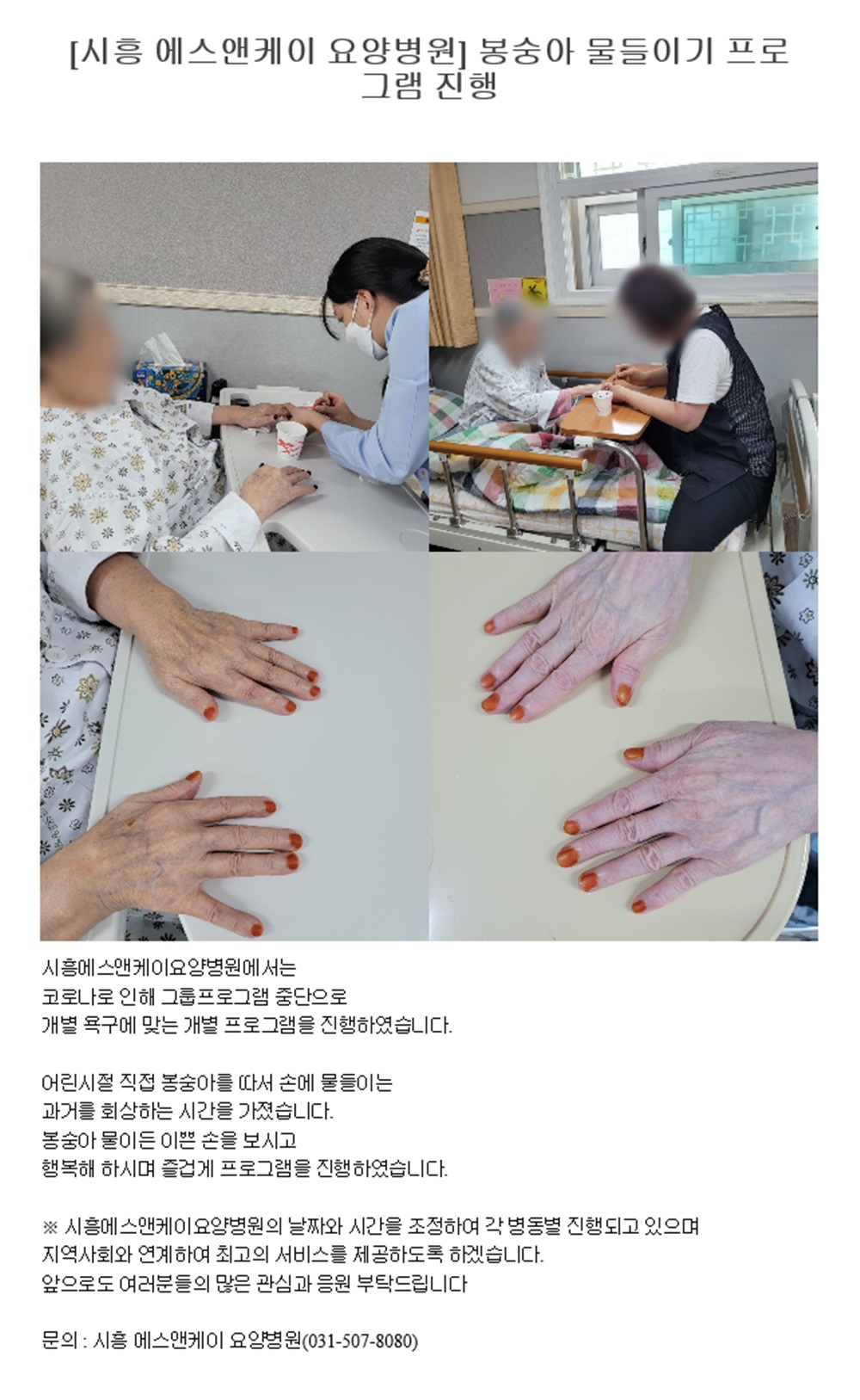 작성자 시흥에스앤케이요양병원 댓글 0건 조회 703회 작성일 22-07-19 10:41본문