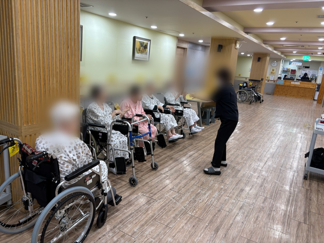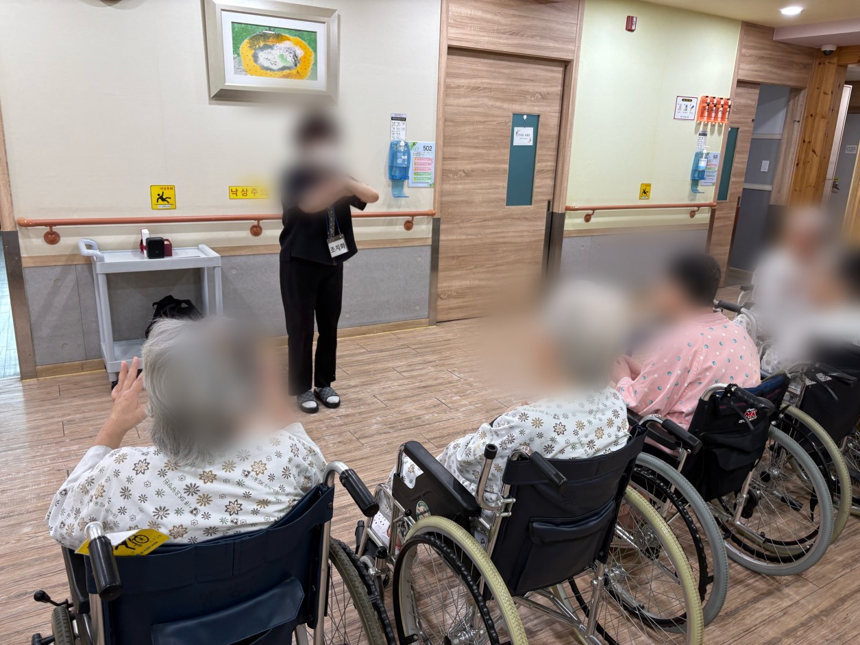 오늘은 리듬스틱으로 박자 따라 노래 부르기를 준비해 주셨는데요!! 환자 분들 모두 즐겁고 행복하여 얼굴에 웃음 가득 띤 수업이 진행 되었습니다.