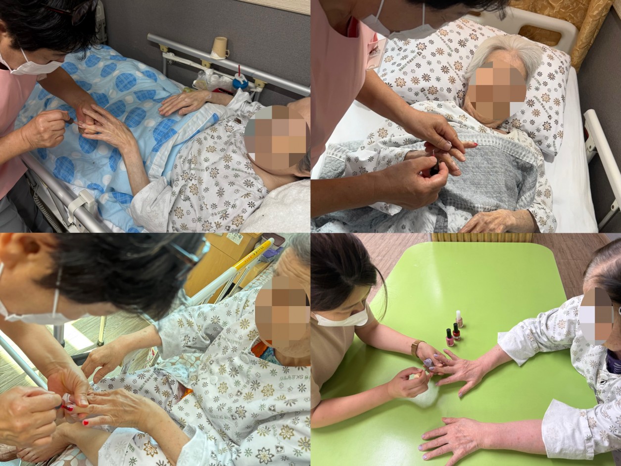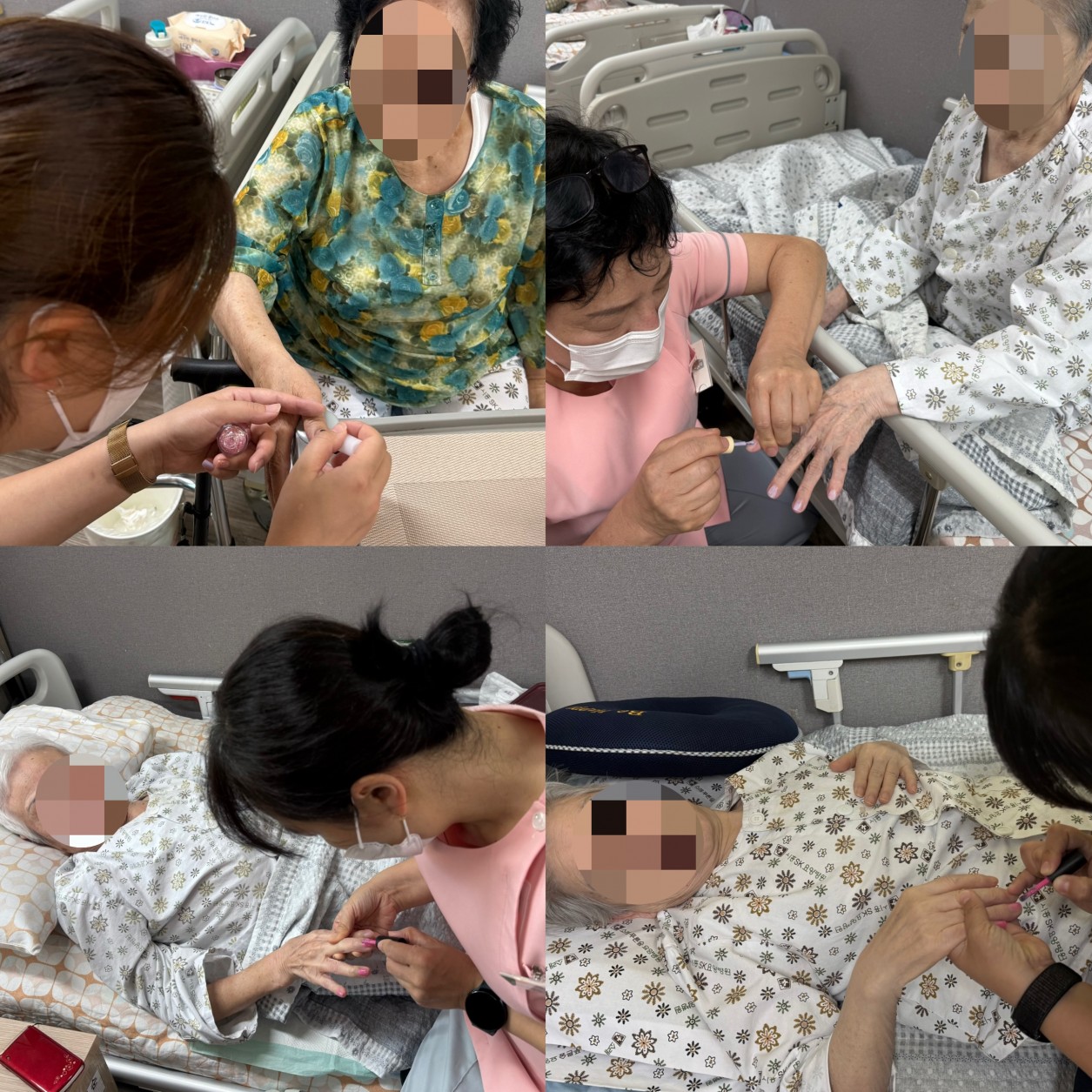 네일(매니큐어)을 해드리니 어르신들이 너무 좋아하시며 조용한 병동에도 웃음꽃이 찾아왔습니다.