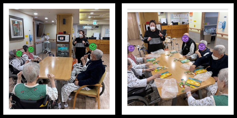 건강체조(웃음레크레이션)및 교구 인지 활동 프로그램을 진행하였습니다