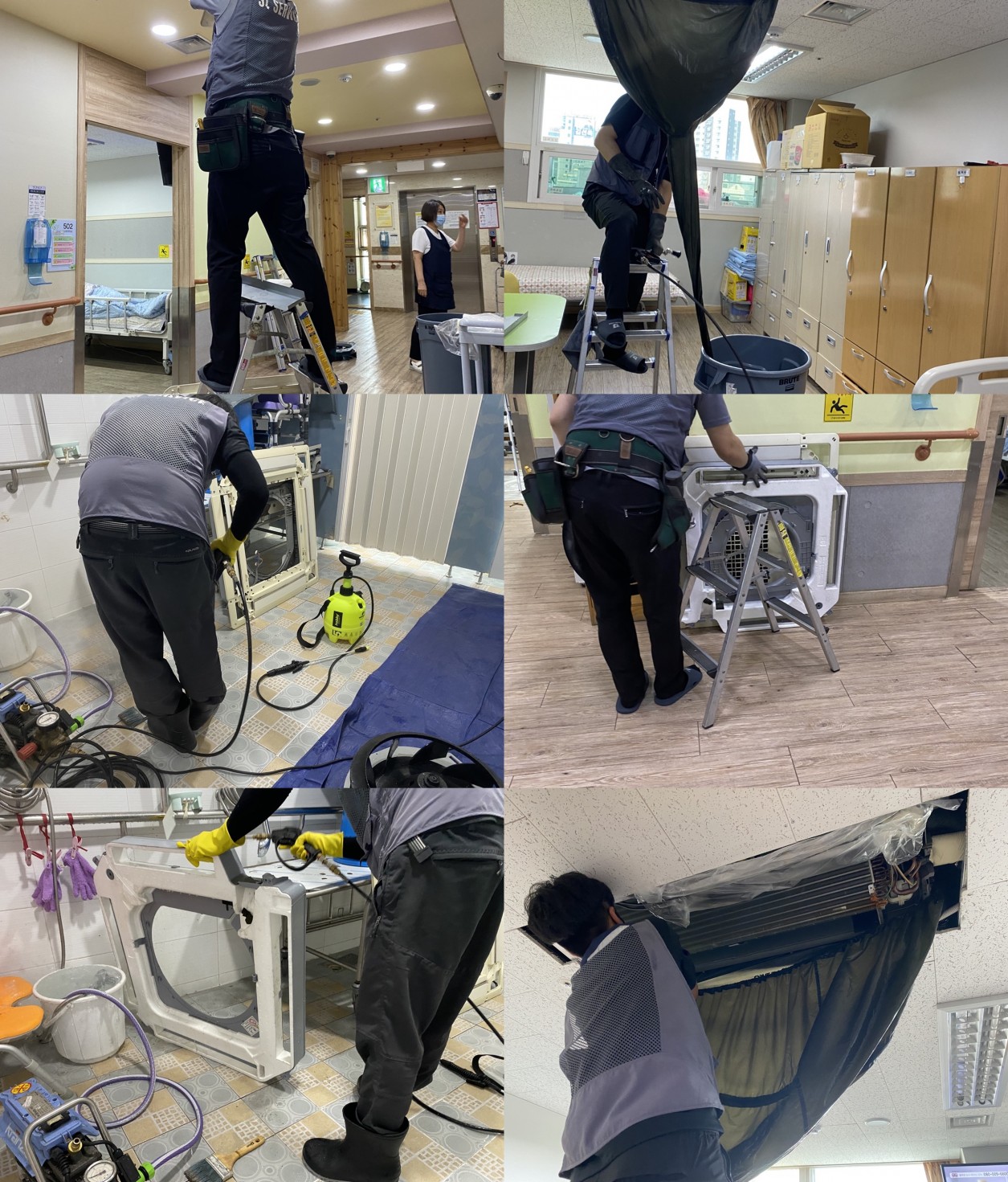 코로나19 장기화로 미뤄두었던 병실 에어컨 세척작업을