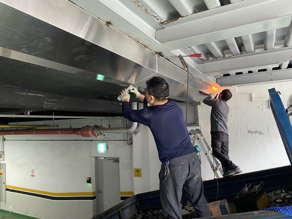 주차장 입구천장네 노후되 버린 빗물받이를 보수공사 하였습니다.