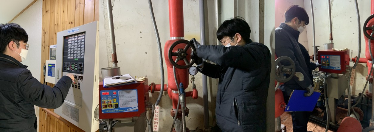 스프링쿨러 작동 점검을 위하여 펌프실 시운전을