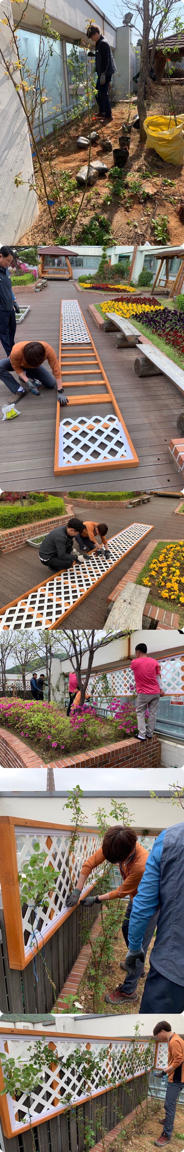 넝굴 장미가 이뿌게 자랄수 있게 지지대를 설치 하였습니다~